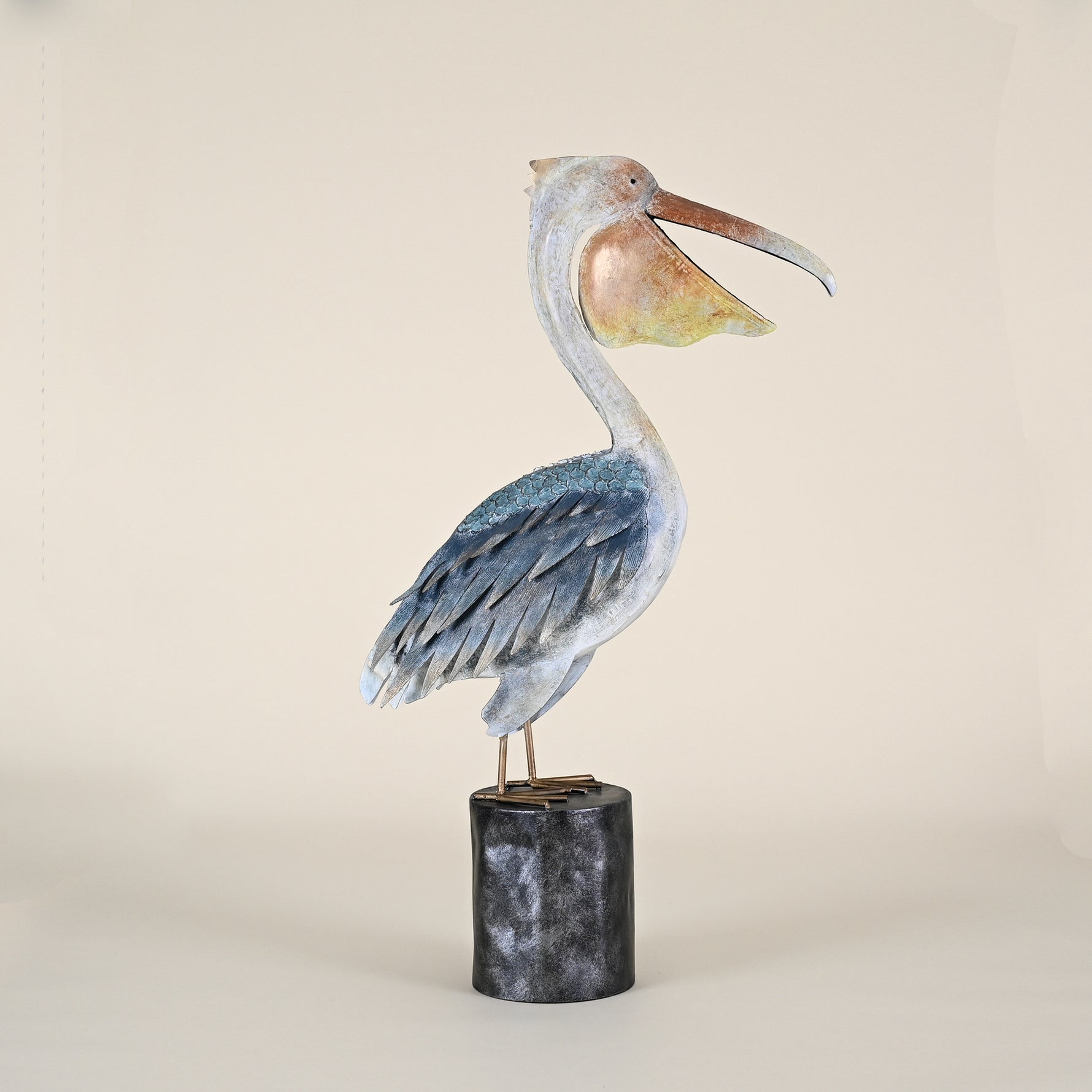 This beautifully detailed hand-made and hand-painted metal pelican will add a splash of color to any space!