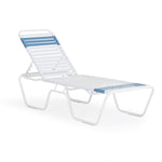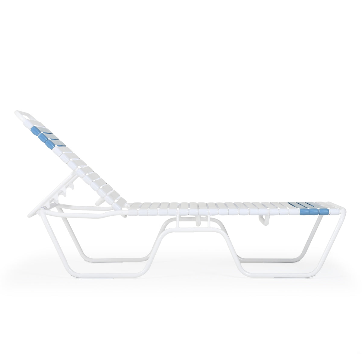 The Aluminum Vinyl Strap collection offers a wide variety of seating and weave options making it a versatile strap collection. Whether you need a chair to stretch out in, sit with your toes in the sand, or place around a table to enjoy a meal with friends and family, this collection offers it all. The straps are double wrapped for ensured strength, treated with UV inhibitors for fade resistance and contain mildew preventatives. This collection has a 1" round frame, is rust-resistant, and is built with stainless steel hardware. The aluminum frame is sandblasted and powder-coated. Select your frame finish and strap color(s) to create the perfect look for your outdoor space. Pair any of these seating options with one of our tables to complete your perfect grouping of furniture!