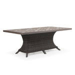 The Sanibel Wicker Outdoor Rectangle Dining Table Set with PoliSoul Top adds a modern touch to a classically styled Collection. This stylish dining set is created from an all weather wicker and PoliSoul Timber. The PoliSoul Timber is durable enough to withstand the coastal elements season after season. The materials used mimic natural elements adding a softness to this strong piece. Complete your Florida Lifestyle with this dining set and enjoy the tranquility!