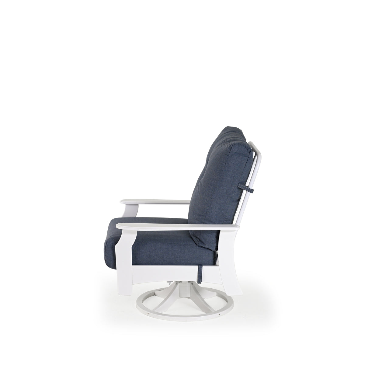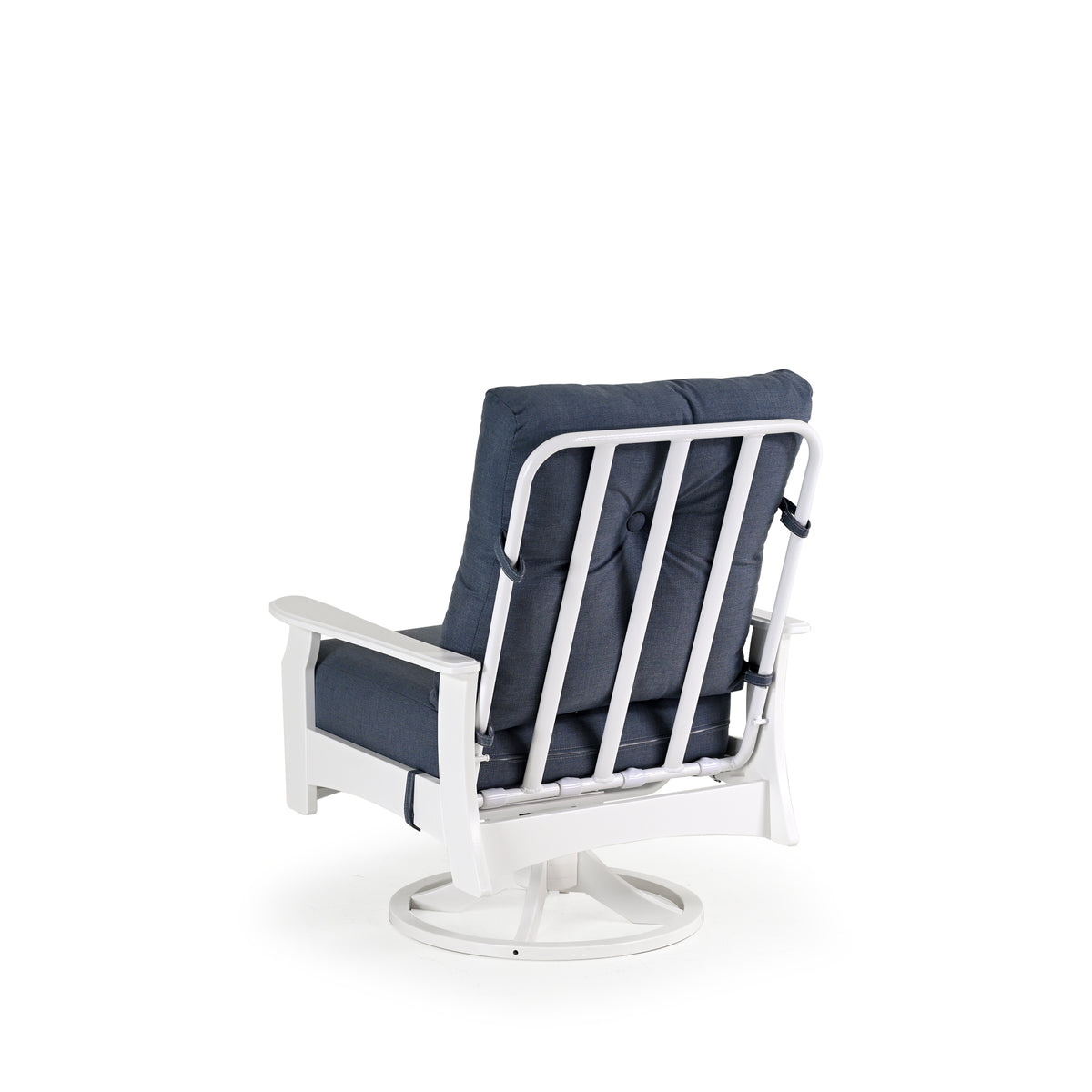 Exclusive to Leaders - this group comes in multiple finishes and fabrics through Special Order. Made from Marine Grade Polymer (MGP) with rust proof aluminum frames, the Tobago Outdoor MGP High Back Swivel Rocker features contoured arm rests.  Plus, the material is 100% recyclable, made in the USA, and has a 10 Year Warranty!